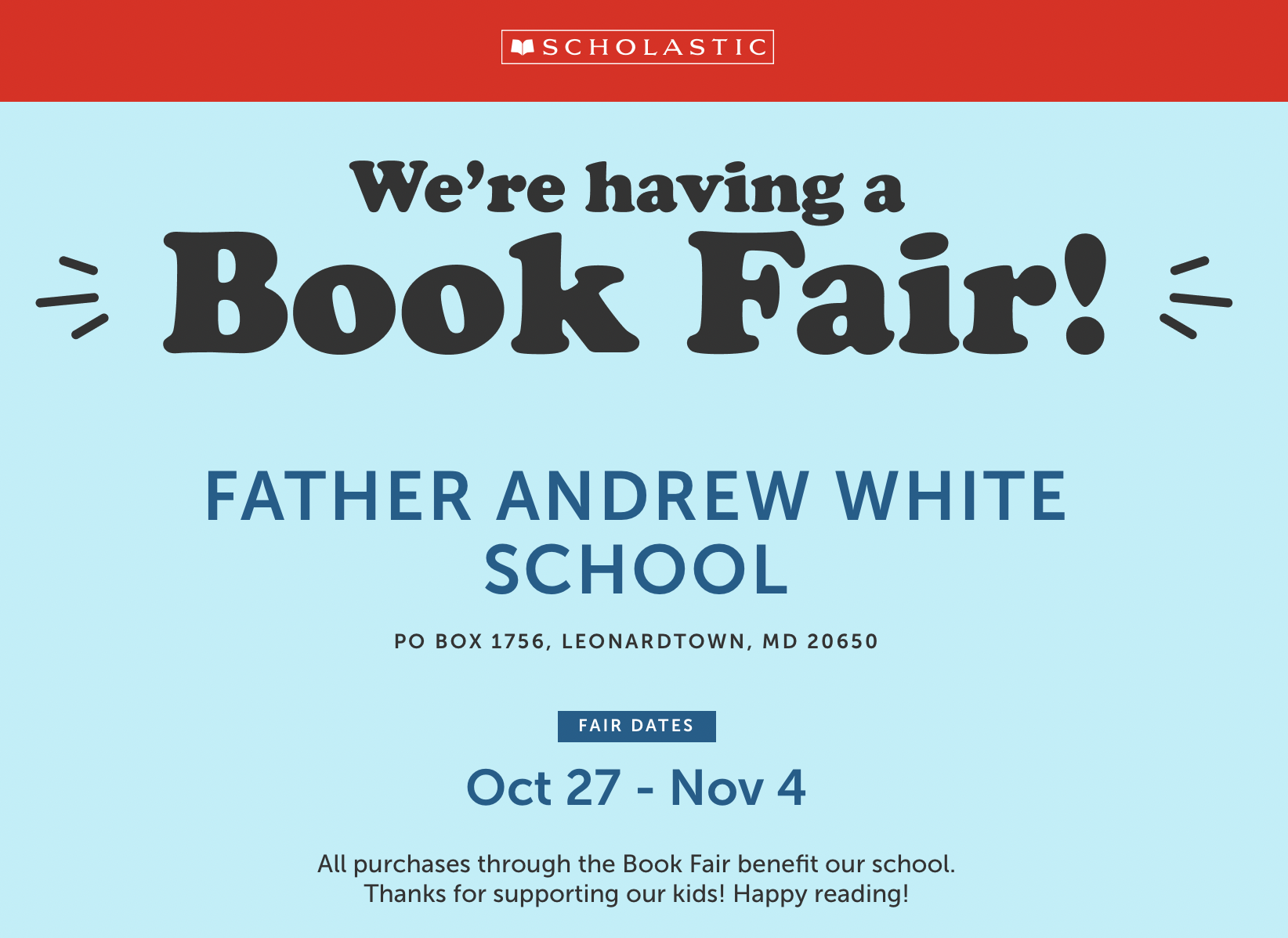 Click HERE to view details about our Fall Book Fair!!