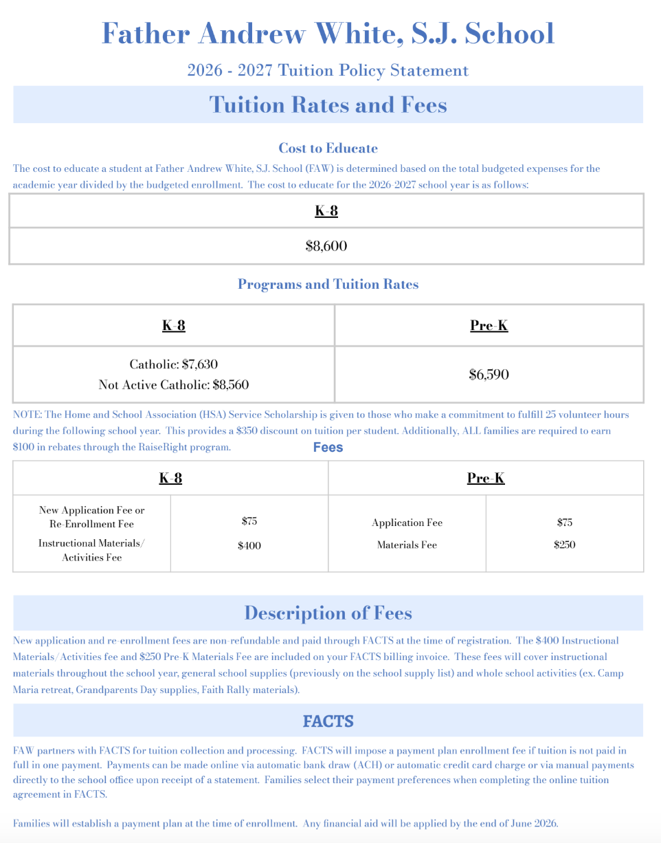 2026-2027 Tuition Assistance Application Deadline for all returning and new families to apply for Archdiocesan Tuition Assistance Program for school year 2026-2027 is February 27, 2026.