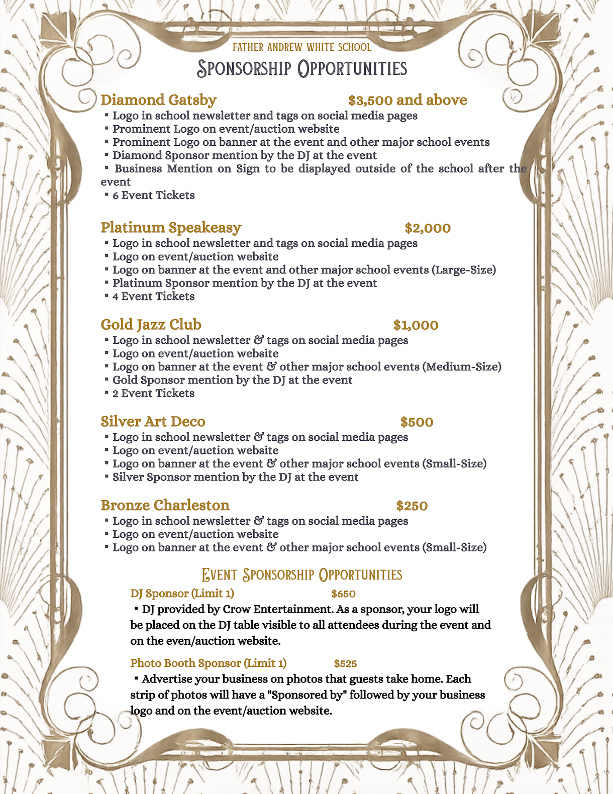 Check back closer to the event to see the items up for bid! Find the event on Facebook – Link coming soon! Buy Tuition Raffle Tickets HERE! Click HERE to access our event! Buy Your Admission Tickets HERE! Interested in sponsoring our event? Contact us today! Sponsorship Opportunities!! Ready to Sponsor? Click HERE!!