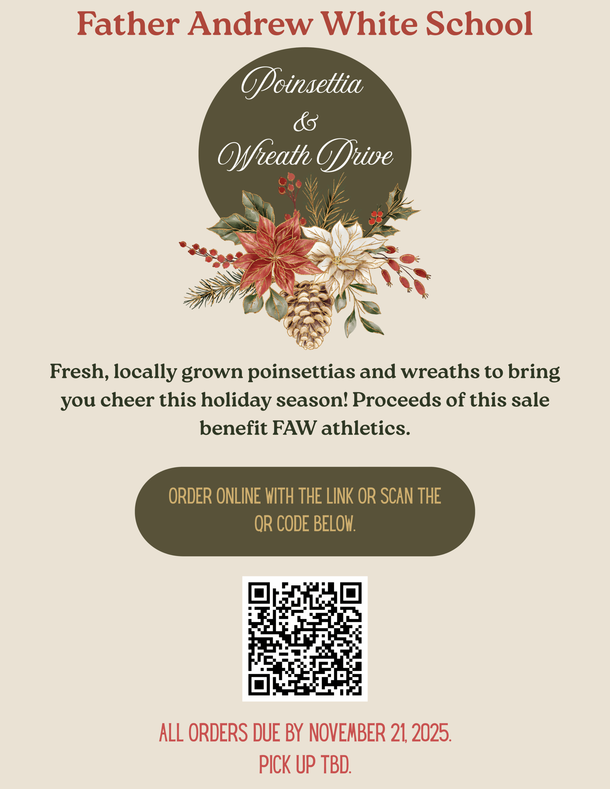 Father Andrew White School is bringing you festive cheer again this Christmas season with our 4th Annual Poinsettia and Wreath Drive!