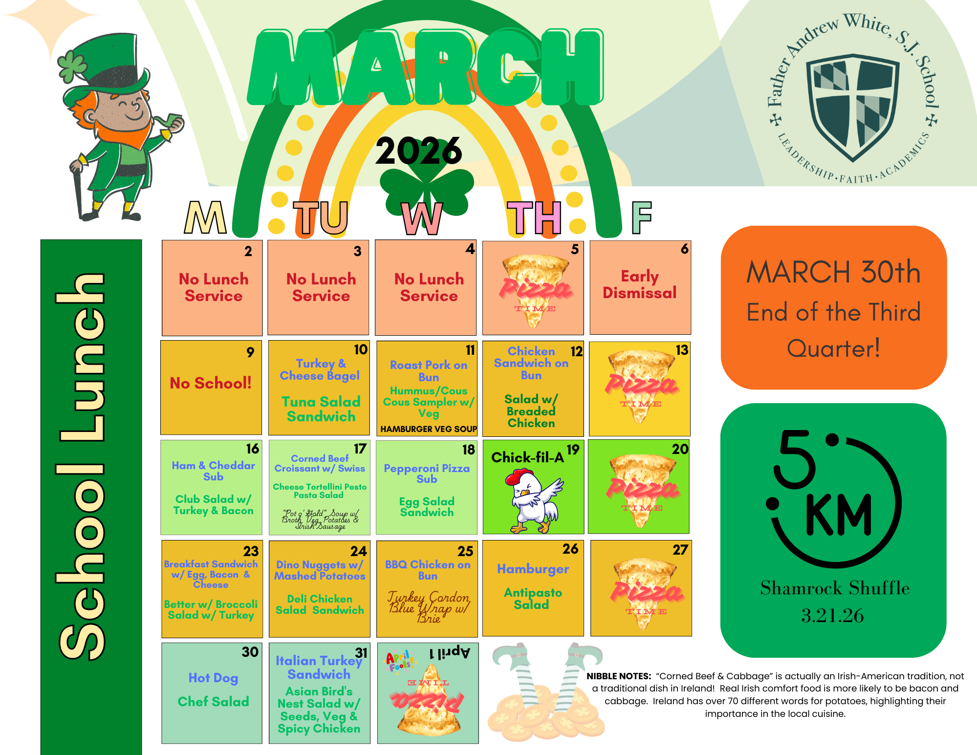 Orders are placed mostly on a monthly basis via the FACTS Family Portal. You will have two weeks to complete your order, and a reminder of the cut-off date will be sent. You may pay online using an electronic check or credit card. In order to keep the costs of lunch at $5.00, the transactions fees are paid by the customer. Orders must be paid by the cut-off date, or they will not be accepted for that month.