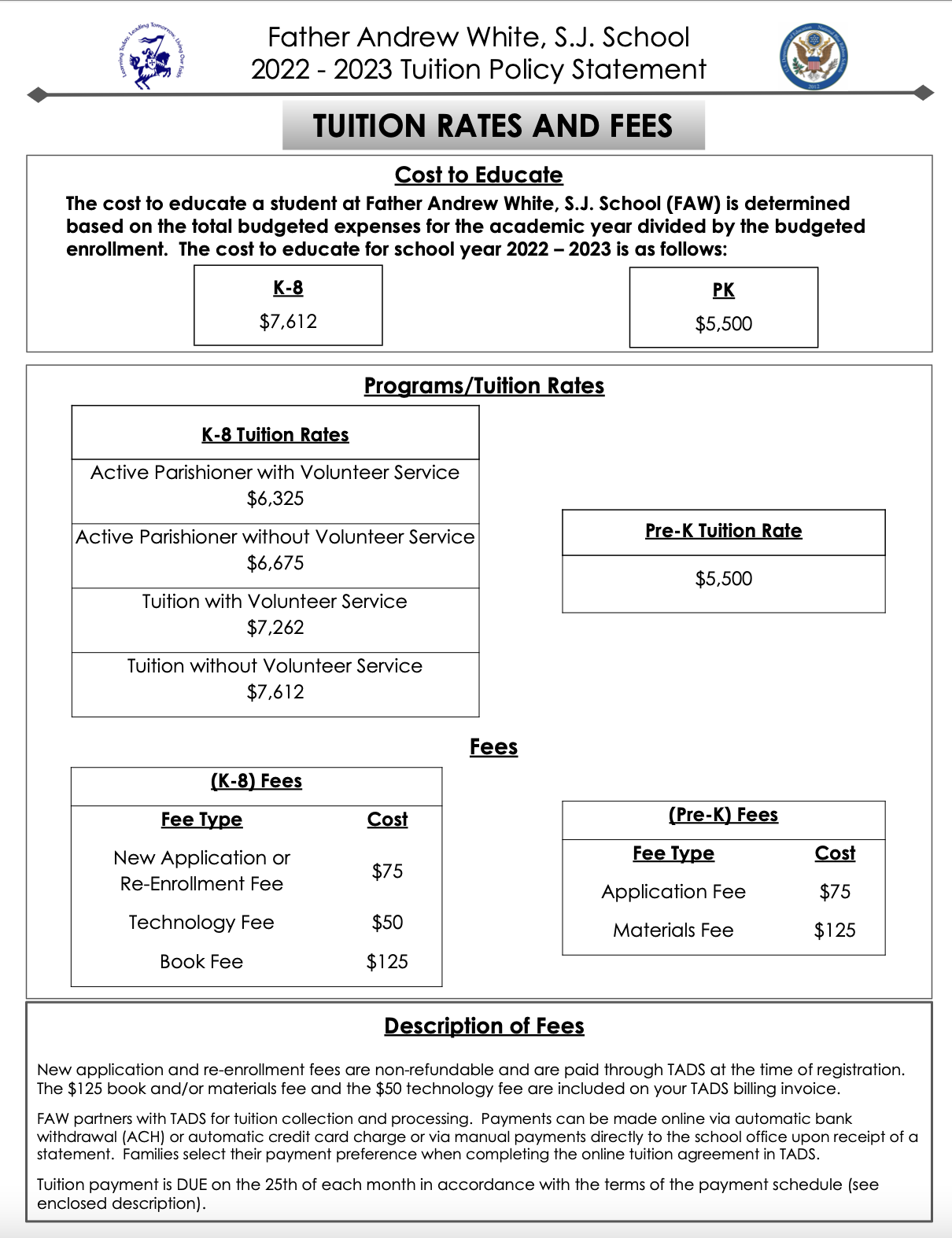 To print this Tuition Policy Statement, please click HERE.