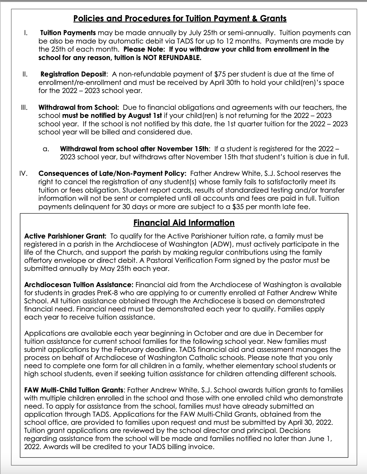 2026-2027 Tuition Assistance Application Deadline for all returning and new families to apply for Archdiocesan Tuition Assistance Program for school year 2026-2027 is February 27, 2026.